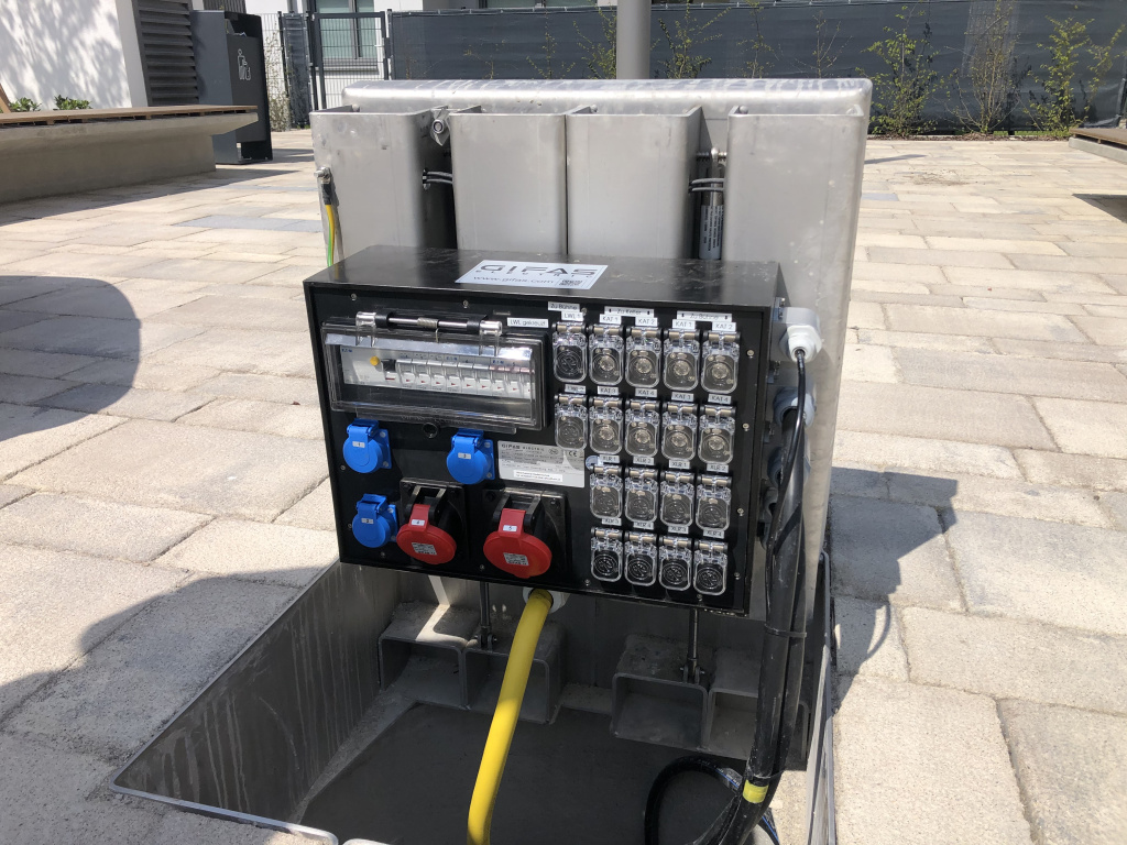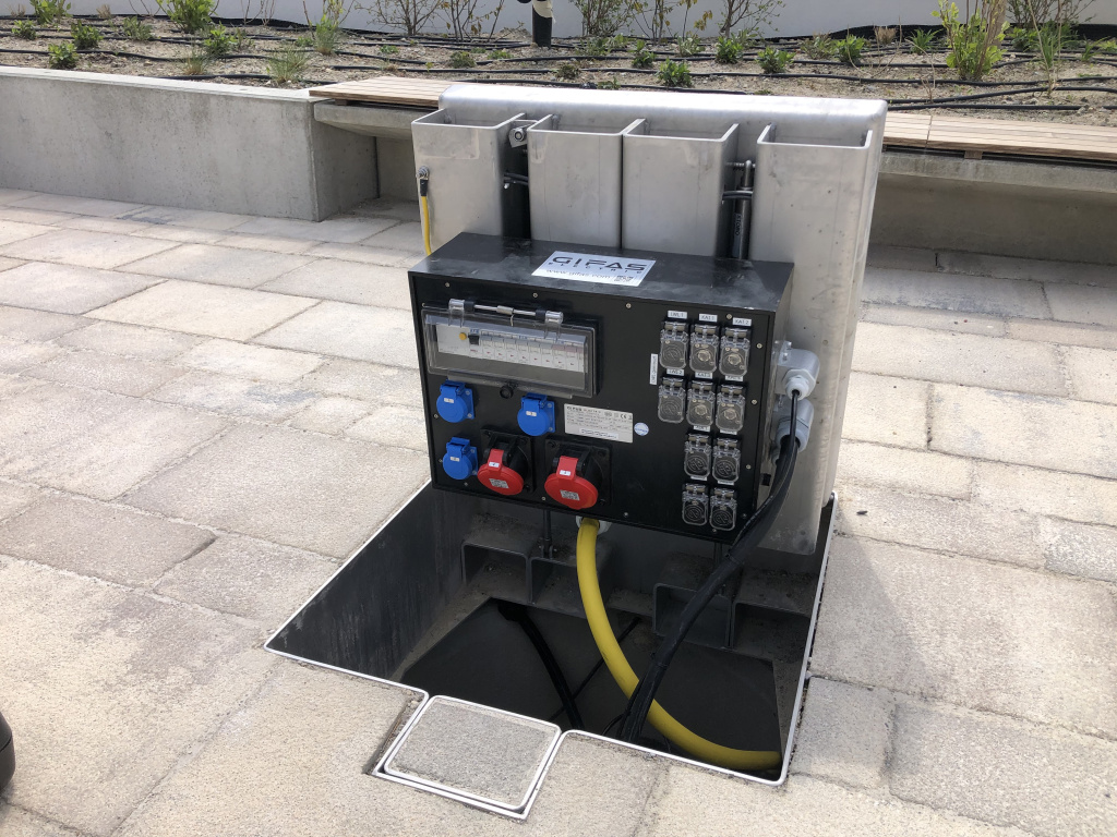 Für Konzerte und größere Veranstaltungen wurde analoge , Netzwerk- & Glasfaserverkabelung in den speziell gefertigten Gifas Unterflurverteilern vorbereitet.