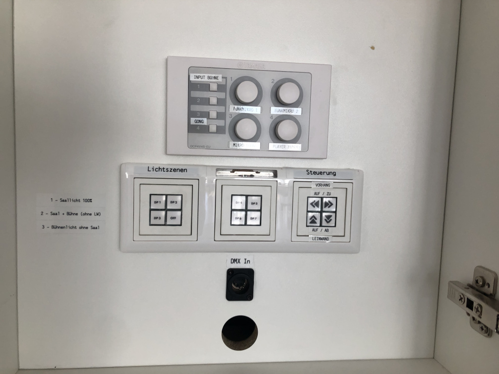 Der Vorplatz bietet mit seiner integrierten Beschallung und Funkmikrofonie, so wie Einspeisepunkten und an ausgezeichneten Bühnenpositionen vorbereiteten Verkabelung die Möglichkeit für eine universelle Nutzung. Wieder lag das Augenmerk auf einfache Bedienung entweder per App, oder leicht zugänglichem Bedienfeld, um den diversesten Nutzern eine einfache Handhabung zu ermöglichen.